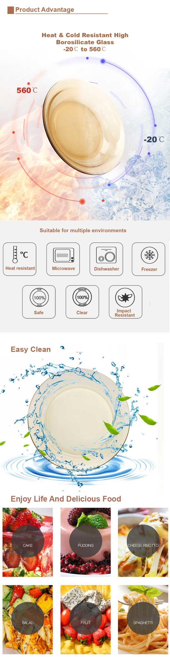 SAFE-high borosilicate glass is healthier than metal and plastic. It will not warp, stain, retain smells, or leach dangerous chemicals into food.
